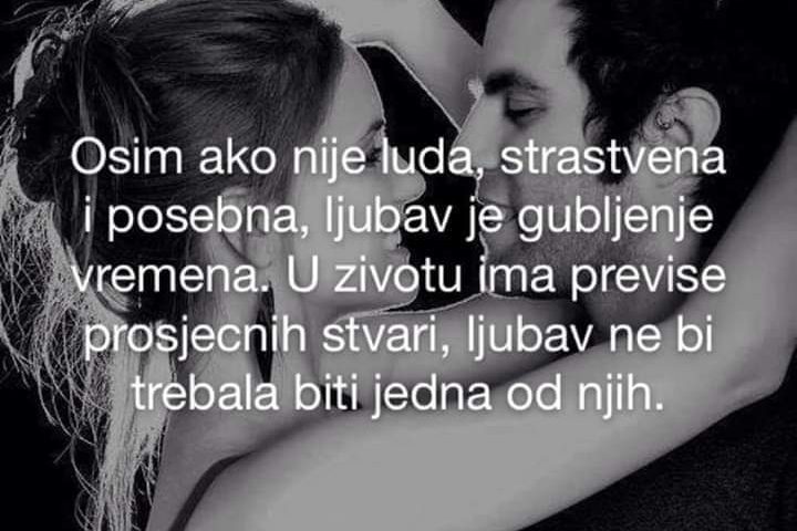 Ili samo znam da se ne mogu zadovoljiti osrednjim. Pa ne pristajem na manje od vatrometa. Na manje od toga da se zemlja zatrese i vulkani eruptiraju. Da mora proključaju i rijeke se izliju iz korita. Romantik okupan sarkazmom u meni želi sve! Zrno ludosti, mrvu mašte. Ne pristajem na manje.